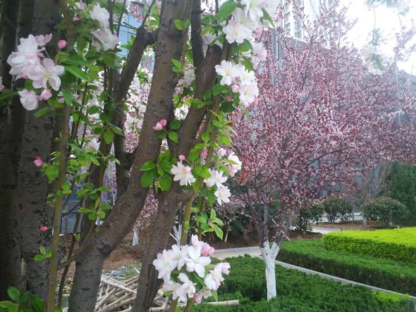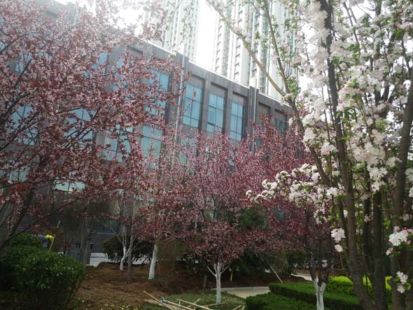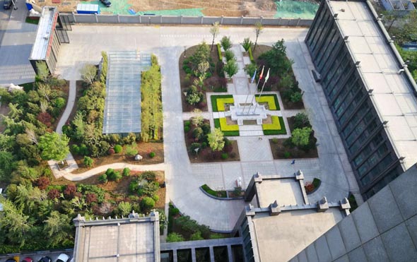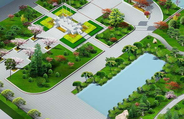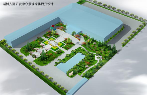 向日葵廣告為客戶設計的公司院內(nèi)景觀植物綠化三維效果圖(鳥瞰圖)。
