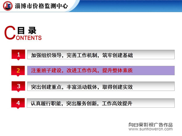 傳承精神文明力量 續(xù)寫價格監(jiān)測認定工作新篇 一、加強組織領導,完善工作機制,筑牢創(chuàng)建基礎。 二、注重班子建設,改進工作作風,提升整體素質。 三、突出創(chuàng)建重點,豐富活動載體,取得創(chuàng)建實效。 四、認真履行職能,突出服務創(chuàng)新,工作高效提升。
