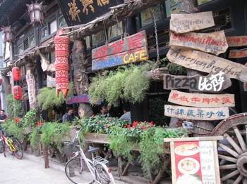這家酒吧也對(duì)外供應(yīng)午餐,據(jù)說(shuō)大廚是平遙最著名的星級(jí)飯店的主廚,戴著雪白的像蛋糕一樣高高的帽子。一碗刀削面要十元,比青島的價(jià)格還要高出兩三元,如果加雞蛋還要另加五元。我們幾個(gè)都不喜歡吃雞蛋,當(dāng)即要了四碗不加雞蛋的。端上來(lái)后,湯醇面白,確實(shí)美味。這時(shí)對(duì)面兩位要了兩碗加雞蛋的,我們一看這雞蛋大吃一驚,竟然就是兩個(gè)剝了皮的茶葉蛋!五元買(mǎi)倆茶葉蛋?。】峙率侨珖?guó)最貴的茶葉蛋了。剛開(kāi)始我們還以為是煎雞蛋呢。吃到一半,感覺(jué)湯太少面太干,于是問(wèn)服務(wù)員要兩碗湯。“我們這里的湯是收費(fèi)的。”真驚了,連碗面條湯都要收費(fèi),不喝了!