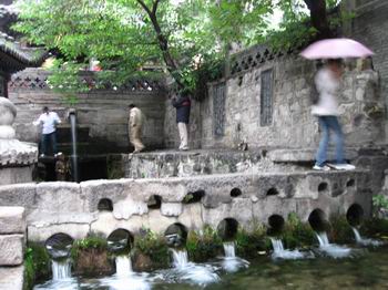 在晉祠門(mén)口下車(chē),外面的雨更密了,呼呼的冷風(fēng)夾裹著綿密的細(xì)雨把我們包圍。由于所帶現(xiàn)金不多,或者說(shuō)平遙的消費(fèi)水平超乎想象,單是停一次車(chē)就要十元,幾天下來(lái)身上的銀子早已花光,到了晉祠門(mén)口只得先去取錢(qián),于是我們兵分兩路,兩個(gè)人去取錢(qián),兩個(gè)人先去晉祠門(mén)口等著。