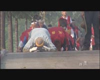 山東正覺寺仁達師父行程千里,三步一拜,朝禮五臺,寫下此詞。我最有感于后兩句“牛上南山,馬走平川”??嘈猩墓适轮灰娪诠糯デ嗪N鞑?,現(xiàn)代僧人能這樣做的實在罕見。能夠?qū)懗鲞@兩句來,只有親身完全經(jīng)歷過才會有這樣的感受。