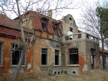 看了103棟德日建筑群中的其中一棟。房頂已經(jīng)破敗,周圍荒草萋萋,進得里面,布局是極好的,看得出以前的精致。木地板也還結(jié)實,有一個旋轉(zhuǎn)的樓梯通往2樓,一看就是德國建筑。外面的窗戶極為別致,旁邊國人自行接續(xù)上一段平房,在里面當(dāng)作社區(qū)活動游藝室,有點不太搭調(diào)。有老人在耳邊叨叨說著舊日的歷史,他們似乎對100年前侵占土地的德國人并無惡感,畢竟年代久遠,而且德國建筑在相當(dāng)長的時間里發(fā)揮了重大作用,100年后的今天,還寫來關(guān)于房屋建筑壽命到期如何維修的函,令國人汗顏不已。