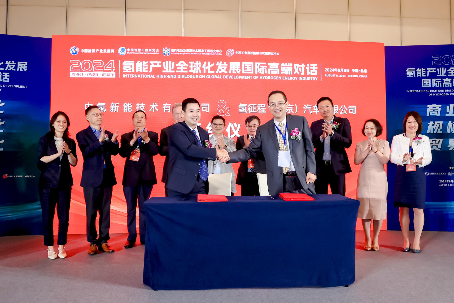 中氫新能董事長周明強(qiáng)與氫征程(北京)汽車有限公司董事長兼總經(jīng)理周亮簽訂合作協(xié)議