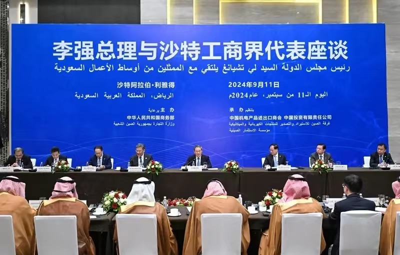 當?shù)貢r間9月11日上午,國務(wù)院總理李強在利雅得同沙特工商界代表座談交流。新華社記者 饒愛民 攝