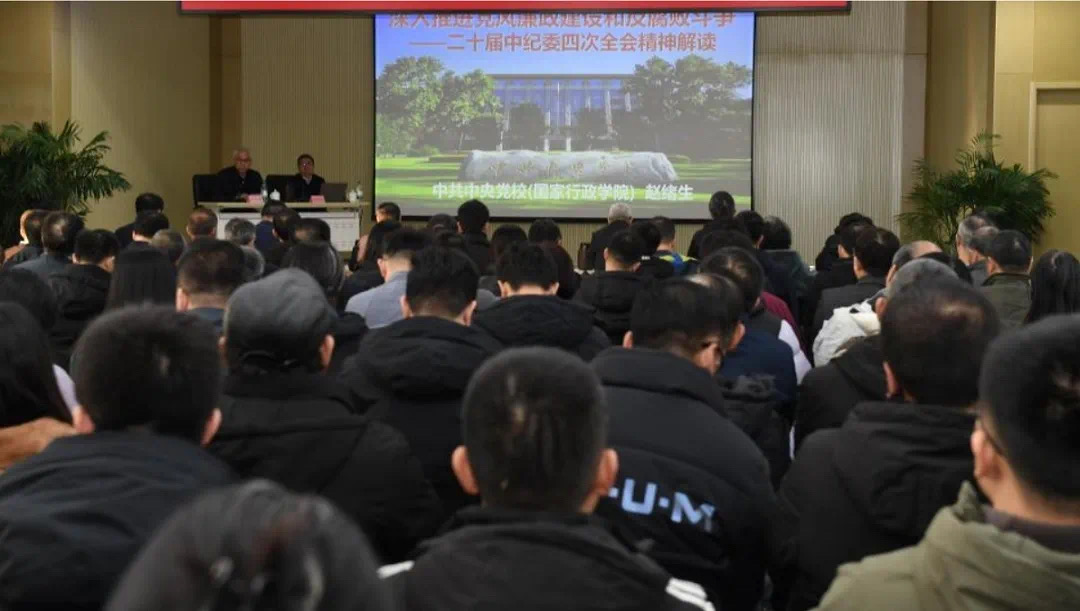 會(huì)上,中共中央黨校(國(guó)家行政學(xué)院)教授趙緒生作《深入推進(jìn)黨風(fēng)廉政建設(shè)和反腐敗斗爭(zhēng)——二十屆中央紀(jì)委四次全會(huì)解讀》輔導(dǎo)報(bào)告,介紹了二十屆中央紀(jì)委四次全會(huì)總體概況,宣貫了習(xí)近平總書(shū)記關(guān)于黨的自我革命的重要思想、改革精神和嚴(yán)的標(biāo)準(zhǔn)正風(fēng)肅紀(jì)反腐等內(nèi)容。