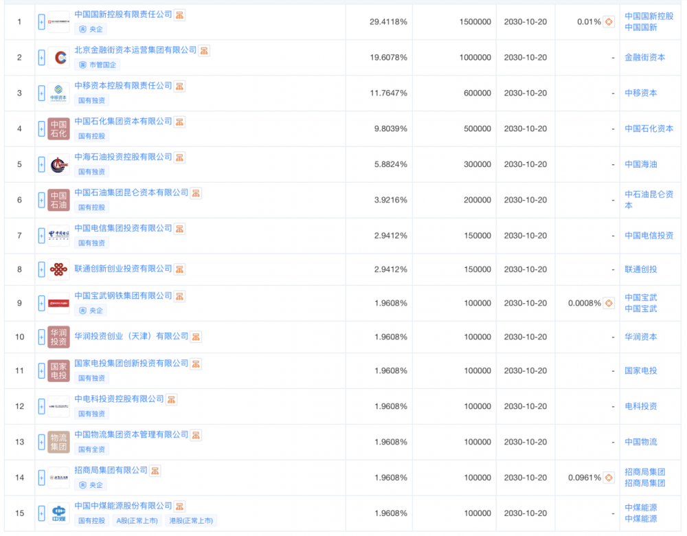 出資結構透露出鮮明行業(yè)導向:中國國新作為第一大股東出資150億元,而中國石化、中國海油、中國石油分別以9.80%、5.88%、3.92%的持股比例位列重要出資方?;?、能源領域央企的集體重倉,折射出傳統(tǒng)產業(yè)巨頭向新興賽道轉型的迫切需求。