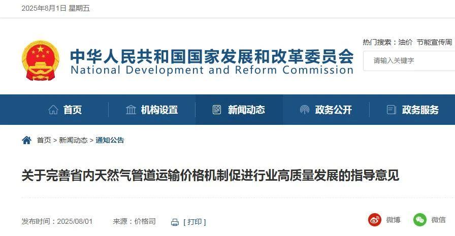 國家發(fā)改委、國家能源局發(fā)布《關(guān)于完善省內(nèi)天然氣管道運(yùn)輸價(jià)格機(jī)制促進(jìn)行業(yè)高質(zhì)量發(fā)展的指導(dǎo)意見》